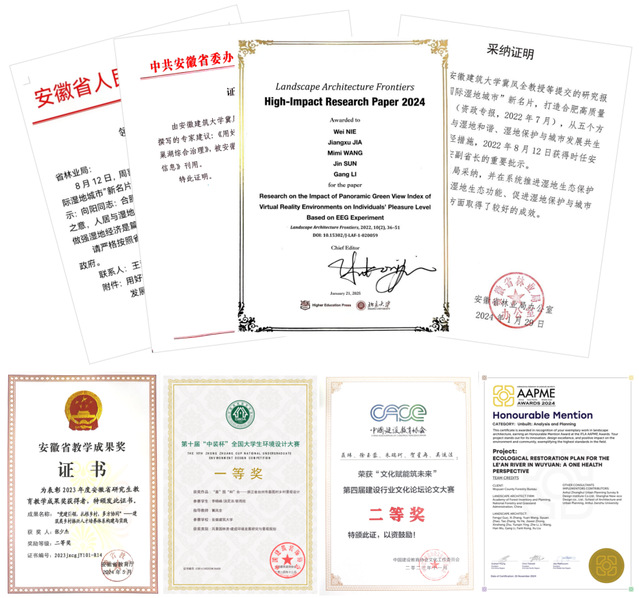 坚持教研科研并重,形成“科研引领-教学相长-服务社会”的良性循环。教学改革方面:首创“三维并进”造园大赛模式,有机融合专业实践、心理健康与劳动教育,近两年吸引10余所高校参与,培养学生200余名,完成花园作品近20个;开发特色课程思政机制,将思政元素融入课程标准、教学过程与考核评价,打造《景园创新与实践》等省级一流课程4门;创新实施“新徽匠学堂”项目,构建“政校企村”四方协同机制,开发徽文化研学课程3门,培训中小学生500余人次,入选“安徽省社科普及优秀典型案例”。科研方面:主持编制我省首部《和美乡村景观风貌评价规范》地方标准,参编中国风景园林学会团体标准1项;承担多项国家级及省部级项目;发表科研论文入选行业顶级期刊“高影响力论文”;师生合作作品获国际风景园林师联合会亚非中东地区奖等国际奖项;撰写的资政报告(如《用好“国际湿地城市”新名片》)获省级领导批示并落地实施;编写专著、教材6部;深度参与百余个社会实践项目,获各类规划设计奖30余项,切实将论文写在祖国大地上。
