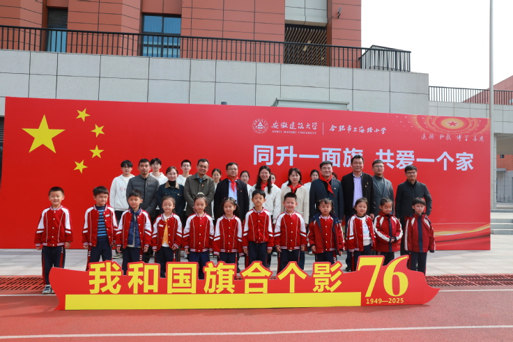 本次活动由校党委宣传部、学工部、校团委、数理学院联合主办,是落实学校“国旗进机关、进学院、进班级、进支部、进服务单位”升旗仪式活动(以下简称“五进”升旗活动)的一次创新实践。团省委少年部二级调研员、省少先队总辅导员、省少工委副主任金菁出席,校团委、数理学院党委、合肥市师范附属小学、上海路小学相关负责人、数理学院学生第一党支部与上海路小学共500余名师生参与本次活动。