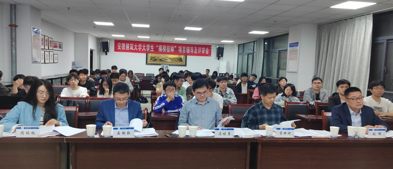 本网讯 近日,我校2024年度大学生创新创业训练计划“揭榜挂帅”项目申报答辩会在徽风楼1112顺利举行。会议邀请了合肥工业大学、安徽工业大学、合肥大学、合肥师范学院、安徽芒课教育科技有限公司等五位专家担任项目评委。来自土木学院、环能学院、电信学院等八个学院的同学参加了答辩会,全校不同专业的百余名同学现场观摩学习。